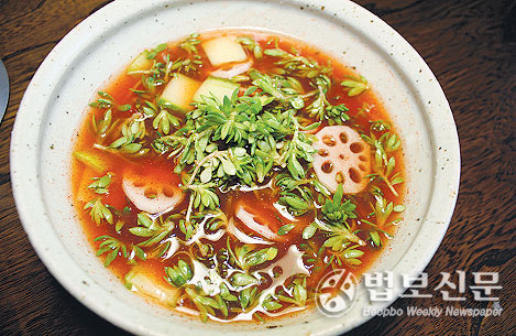 ‧연근풀을 넣어 구수한 맛을 낸다.