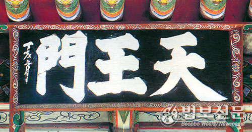| 이완용의 김천 직지사 편액 ‘천왕문’. |