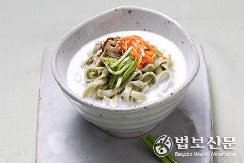 ‧면 반죽에 연잎을 넣어 신선한 맛과 영양을 보강한다.
