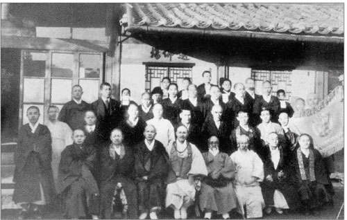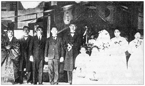 | 1927년 제주불교포교당에서 치러진 불교식 결혼식 사진으로, 이 사진은 현재 볼 수 있는 최초의 불교식 결혼 기념사진이다. 사진자료=한국불교 100년 |