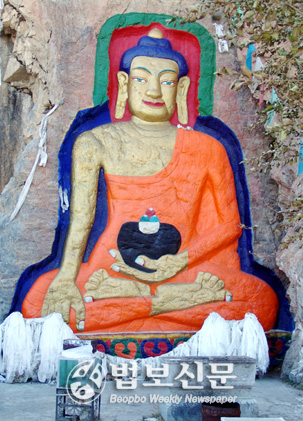| 척박한 자연마저도 양약으로 삼아 탐욕과 곤란함, 근심을 치유하는 티베트 사람들. 라싸의 외곽에 있는 너럭바위에 조성한 석가모니 마애불은 자연을 부처님으로 받들려는 그들의 표현이다. 오색으로 색칠한 부처님의 모습이 이웃집 아저씨처럼 친근하다. |