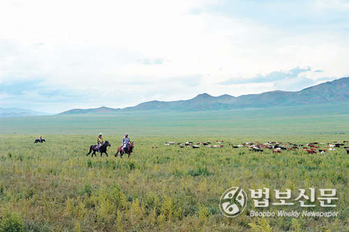 순례 첫날 마주한 초원은 지루할 정도로 광활했다. 몽골 수도 울란바타르에서 옛 수도 하르허린을 향해 남서쪽으로 5시간이나 쉬지 않고 달려도 풍경은 변하지 않았다. 초원, 초원 그리고 초원. 답답하기까지 했다. 간간이 스쳐 지나가는 게르(나무와 양털을 이용해 만든 둥근 모양의 몽골 전통 집)와 한가로이 풀을 뜯는 양과 염소, 말 등 가축만이 심심한 순례자를 달랬다.
