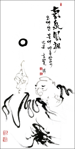나옹화상과 같은 아빠도 없이 태어난 철저한 중생.민초 스님이 바로 그 원만중도의 오대산에서, 북대 두루봉 가까운 미륵암에서 화엄법신선을 그 시끄럽던 동아시아의 과도기에 피투성이로 보림한 까닭도 따지고 보면 바로 이런 것 아니었던가?