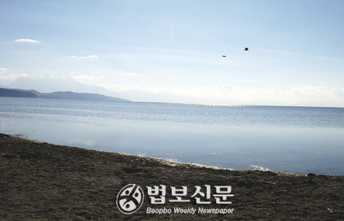 | 티베트의 영혼은 그 누구도 힘이나 강요에 의해 가둘 수 없다. 자유를 갈망하는 티베트인들의 간절한 기도를 아는 듯 두 마리의 새가 수미산 근처에 있는 ‘마팡융쵸’(불패의 호수, 4560m) 호수 위를 유유자적하게 나르고 있다. 갠지스, 인더스 강의 원류인 이 호수는 인간의 욕망을 씻어주는 성스러운 호수이다. 사진제공=일광여행사 |