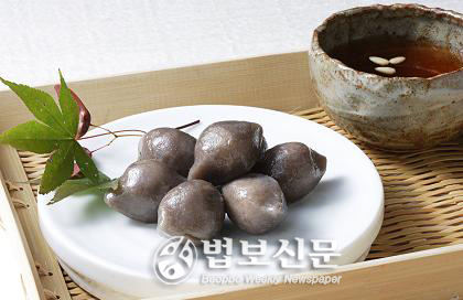 3.연자는 물에 불려 무르게 찐 다음 체에 걸러 고물을 만들어 소금, 조청을 넣어 고루 섞는다.