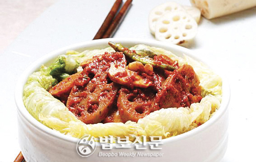 김치는 필수영양소를 골고루 함유한 영양의 보고이다. 배추에는 비타민A, C, 카로틴 등이 있으며 무의 소화효소인 디아스타제는 위장기능 강화, 정혈작용, 발암억제, 고혈압, 협심증, 숙취, 해독 등의 효능이 있고, 고추의 매운 성분인 캡사이신은 체지방을 분해해 비만을 억제하고 엔돌핀과 호르몬 분비촉진, 면역세포 활성화, 항산화 작용으로 노화를 억제한다. 연근을 이용한 김치는 재료와 양념의 맛, 영양을 조화롭게 하고 소화흡수를 잘되게 한다.