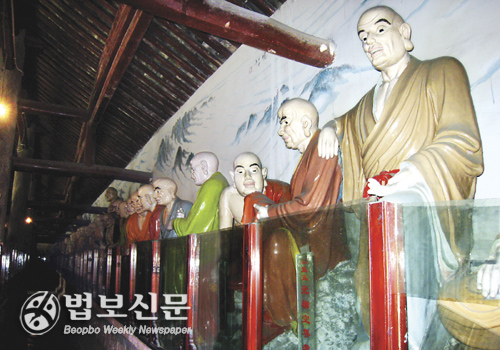 30여 명의 승려가 상주하는 나한사 도량 중심축은 관음전, 승가육화(僧家六和, 아미타불이 주불이며 좌우에 관세음보살과 대세지보살을 모신다), 대웅전이다. 더불어 다관을 겸하고 있었다. 보본당(報本堂)이라는 당우 안에는 마조의 상이 모셔져 있고, 관음전을 중심으로 양쪽에 나한전이 있다. 나한전에 들어가 보니 이제까지 친견했던 나한님의 상호가 아니었다. 위엄이나 권위가 사라진 익살스럽고 천진한 표정들이었으며, 지극히 자연스러우면서도 호탕한 대륙기질의 상호였다. 부처님과 나한님 상호도 이렇게 친근감이 들어야 하지 않나 싶다.
