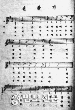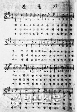 | 1925년 권상로가 펴낸 ‘부모은듕경’에 실린 현존 최고의 불교음악 ‘찬불가’. |