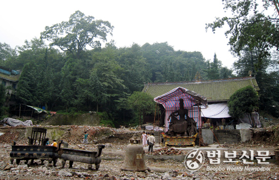 | 무상이 두타행을 했다는 고태안사. 2008년 지진으로 사찰은 완전히 폐허가 됐다. 먼지를 뒤집어 쓴 관세음보살상 뒤로 대웅전 조성 불사가 한창이다. |