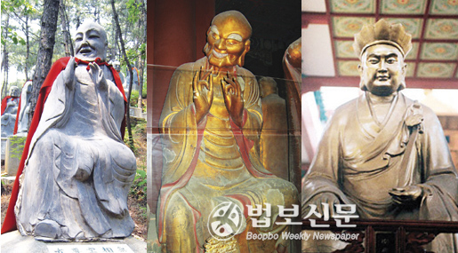 | 중국 사찰에서 무상선사를 만나는 것은 어려운 일이 아니다. 왼쪽 위부터 베이징 홍라사, 베이징 벽운사, 항저우 영은사. |