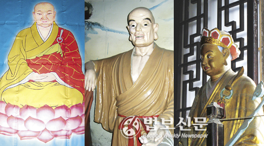 | 왼쪽부터 청두 대자사에 모셔진 무상선사, 시방시 나한사, 신도현 보광사. |
