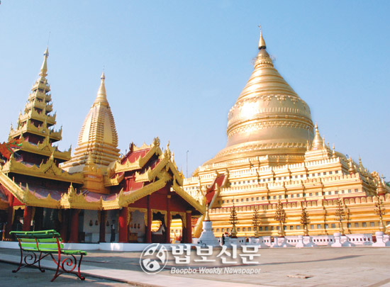 | 아노라타왕이 건립한 쉐지곤 파고다. 부처님의 머리뼈 사리와 모조 치아 사리가 봉안돼 있다고 한다. |
