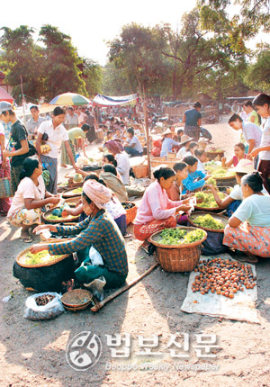 | 미얀마 사람들의 일상을 엿볼수 있는 냥우 재래시장. 날씨가 더운 미얀마의 특성상 아침 일찍 시장이 열린다. |