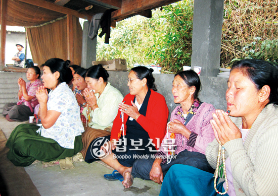 | 다비식에 참석한 마을 여인들이 ‘옴마니반메훔’을 염하고 있다. |