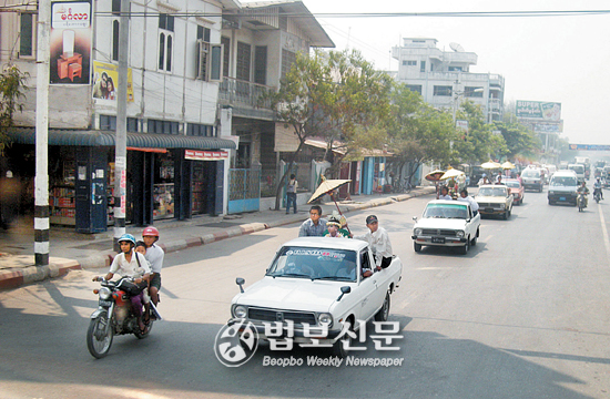 하지만 역시 이곳은 미얀마, 그리고 만들레이다. 도심 한 복판 도로에 갑자기 한 무리의 행렬이 지나간다. 줄지어가는 픽업트럭들이다. 트럭 뒤에 탄 어른은 금빛 양산을 받쳐 들고 있는데 그 우산 아래에는 마치 만들레이성에 살던 왕자라도 되는 듯 화려하게 치장한 10대의 소년들이 앉아있다. 그 뒤로 줄줄이 이어지는 트럭에도 모두 마찬가지다. 네, 다섯 대의 트럭 뒤로는 일가족으로 보이는 사람들을 잔뜩 태운 승합차와 트럭 등이 꼬리를 문다. 단기출가를 위해 사원으로 향하는 아이들이다. 생전 처음 보는 낯선 풍경에 버스 안 모든 사람들의 시선이 창밖으로 뛰어내릴 듯 고정돼 버렸다. 이들의 모습을 놓칠세라 미처 창문도 열지 않은 채 성급히 촬영했음을 알아차린 것은 행렬이 다 지나가고 나서다.