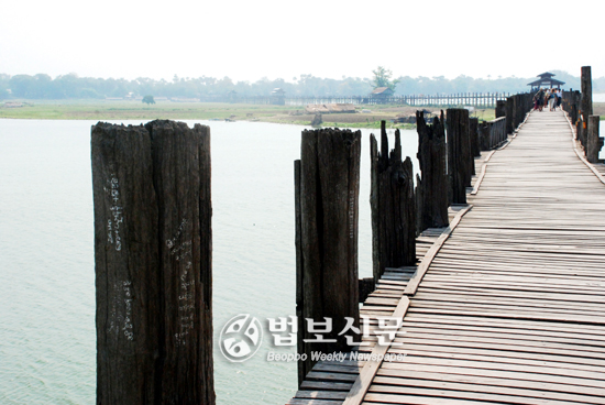 따웅떠만 호수를 가로질러 놓여있는 우빼인 다리는 길이만도 1.2킬로미터에 달한다. 무려 1086개에 달하는 티크목을 사용해 그 긴 다리를 만들었는데 세계에서 가장 긴 나무다리란다. 더욱 놀라운 사실은 이 다리가 지어진지 무려 160여 년이나 되었다는 점이다. 물에 잠겨도 쉽게 썩지 않는 티크목 덕분에 오늘날까지도 많은 사람들이 이 다리를 건너다닌다.