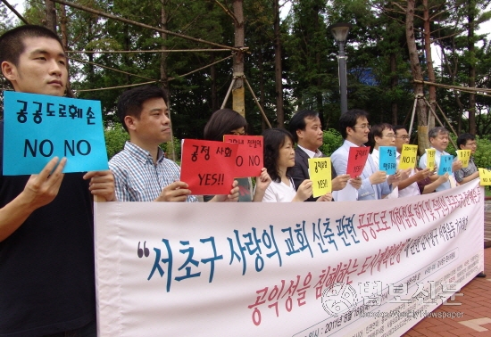 준비위는 “본 사안과 관련해 서초구청은 절차상의 위법사항이 없다는 이유로 책임을 회피하려 하지만 서초구청, 서울시, 국토해양부, 국회, 청와대로 이어지는 권력형 비리라는 의혹을 떨칠 수 없다”며 “투명하고 공정한 사회를 위해 25개 시민사회단체는 공동으로 감사청구 준비위원회를 구성하고 10만명을 목표로 전국적인 서명운동을 전개한다”고 밝혔다.