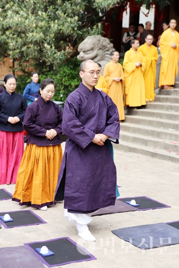 다음날 참가자들은 남창에 소재한 취암선사(翠岩禪寺)를 찾았다. 이곳에서는 대중 스님이 참여한 가운데 한·중 차인들의 헌다의식과 스님들이 이끄는 보차의식이 진행됐다. 대웅전 앞에서 숙우회는 ‘현로(玄路)’라는 다법을 선보였다. 정화의식에 이어 부처님과 스님들께 차를 올린 다음 차인들도 차를 나누어 마시고 입정에 드는 다법이었다. 허공에 뿌리는 가루 향과 땅에 뿌리는 꽃잎으로 그리는 원상, 입정을 마친 차인들의 느린 걸음은 앞이 보이지 않지만 진리와 깨달음을 구하는 지난(至難)한 ‘길 없는 길’의 표현이다.