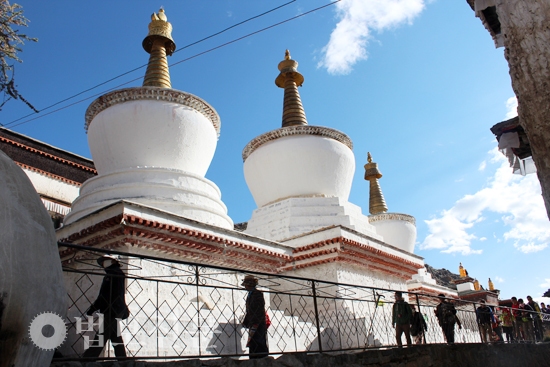 좁은 길 끝에서 역대 판첸라마의 사리와 가사를 봉안한 탑을 만난다. 이미 수많은 사람들이 시계방향으로 돌며 꼬라를 하거나 오체투지로 몸을 낮추고 있었다. 이곳에서 티베트인들은 무병장수를 기원한다고 한다. 그들과 함께 영탑전을 참배하며 숨을 돌린다. 잠시 휴식을 취한 순례단은 낮은 경사의 언덕을 올라 미륵전인 잠캉 첸모에 도착한다. 이곳에 모셔진 미륵불은 세계에서 가장 큰 청동미륵불로 알려졌다. 높이 27m에 얼굴 크기만도 4.2m에 달한다. 6700돈의 황금과 12만kg의 청동으로 만들어졌으며 온갖 종류의 다이아몬드와 진주, 루비로 장식됐다. 불상을 둘러싼 벽면 역시 금으로 채색된 불화로 장엄돼 보는 이들의 감탄을 자아내고 있다. 그 압도적인 크기와 화려함에 잠시 넋을 잃고 바라보다 불상 아래 놓인 사진 세장에 시선이 멈춘다. 9대, 10대 판첸라마와 중국이 11대 판첸라마라고 주장하는 기알첸 노르부.