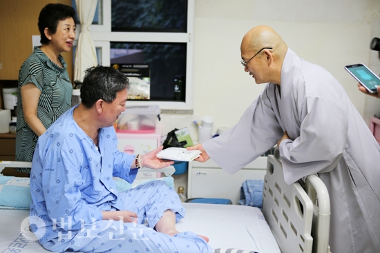 음악회에 앞서 본부장 원범 스님을 비롯한 이사 스님들과 재가 이사들은 병실 전체를 돌며 환자 쾌유를 기원하는 선물을 직접 전달〈사진〉했다. 이 자리에는 포교사단 부산지역단 동의의료원 마하연 정기법회팀도 봉사자로 참여했다.