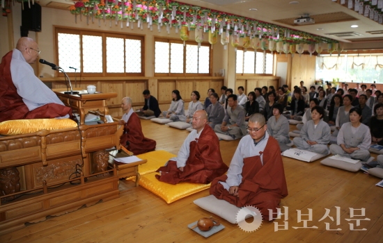 이날 증명법사 지안 스님은 법어에서 “‘불설가사공덕경’에서는 ‘무릇 가사란 여래의 상복이며 보살의 대의라, 입는 자는 능히 복전이 되고 만드는 사람은 속히 수승한 과보를 얻는다’고 하셨다”며 “공양을 올린 불자들이 맑은 복을 짓고 가사를 수하는 스님들을 초발심을 되새기며 수행자의 원력을 점검하고 발원을 되새기는 계기가 되는 자리”라고 격려했다.
