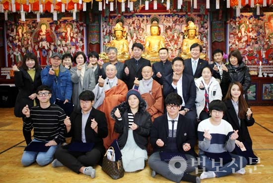 부산 원오사(주지 정관 스님)도 12월21일 동지를 맞아 ‘꿈나무가꾸기 명정장학재단 장학금 전달식’을 봉행했다. 특히 해마다 원오사 동지법회에 동참해온 불자 야구스타 이대호 선수가 올해도 어김없이 도량을 찾아 나눔을 실천했다. 원오사는 동부산대 불교학생회 재학생을 비롯한 18명에게 총 870만원의 장학금을 전달했으며 지역 경로당, 복지시설, 소방서 등 36개 기관에 총 2000인분의 동지팥죽을 선물했다. 이대호 선수는 “조금이라도 도움이 되고자 동지마다 찾게 된다”며 “장학금을 받는 청소년 여러분 모두 건강하고 즐겁게 성장하기를 바란다”고 응원했다.
