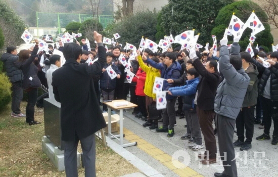 이날 부산불교연합신도회(회장 박대성)는 범어사 상마마을에 위치한 삼일운동 유공비 앞에서 ‘부산 불교 3.1운동 기념행사’를 전개했다. 지난해에 이어 두 번째로 마련된 이날 행사에는 금정총림 범어사 총무국장 원타 스님, 박대성 부산불교연합신도회장을 비롯한 재가 불자 50여 명이 동참해 범어사 명정학교를 중심으로 전개된 부산지역 3.1운동의 역사를 조명했다.