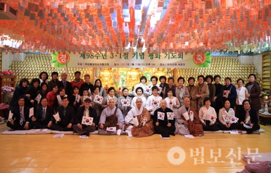 부산 여여선원장 정여 스님을 중심으로 종교 지도자들이 교류를 이어 온 부산종교지도자협의회(회장 정여 스님)도 삼일절 기념일에 앞서 2월28일 여여선원 큰법당에서 ‘제 98주년 기념 3.1절 평화기도회’를 봉행했다. 이 자리에는 여여선원장 정여, 금어사 주지 월강 스님, 김계춘 신부, 양영환 목사 등 종교 지도자들과 불자 등 사부대중 100여 명이 동참했다.